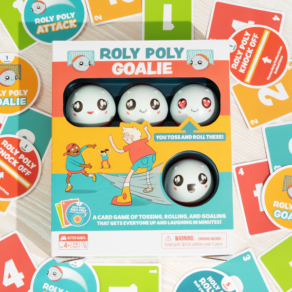 A card game of tossing, rolling, and goaling that gives everyone the giggles.