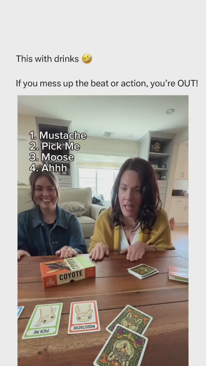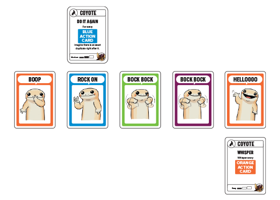 Each card has an action and a word. Lay out a line of cards and take turns, performing and saying each card. Add “coyote” cards to sabotage the other players and make the game harder. Mess up the sequence, and you're out. The last player standing wins! Unleash your trickster spirit with a game that's fast, chaotic, and different every time you play.