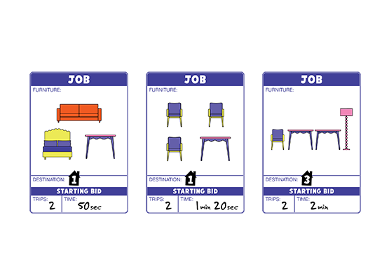 Your team's goal is to move miniature furniture to its new home in as few trips as you can, as quickly as possible. The catch is, you can only use your pinkies! You gotta stack the goods, plan your trip, and work together to make sure you don't drop anything. The team that completes the most successful moving jobs wins.