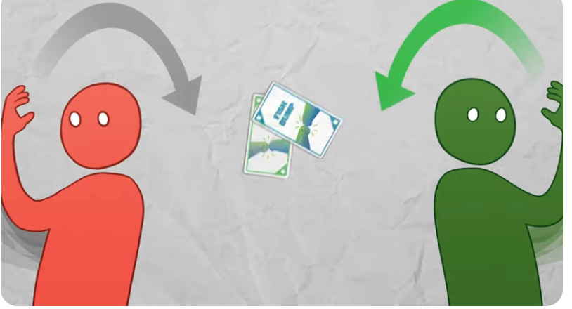 In Hoppy Salmon, each player gets a stack of cards. Every card has a simple action that requires a partner. Players frantically shout their actions looking for matching players. When they find a match, they both complete the action and discard their used cards. The first player to finish all of their cards wins!